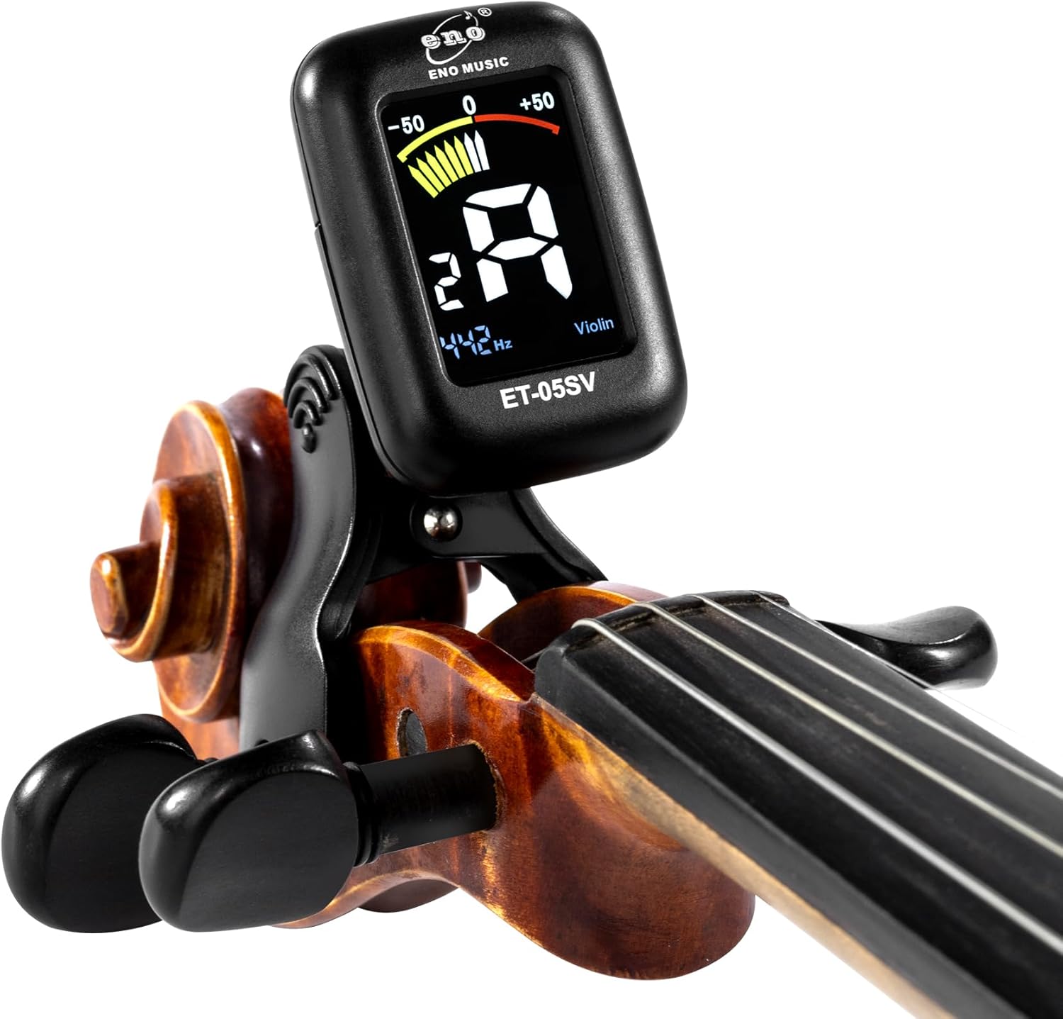 ENO MUSIC Professional Violin Viola Tuner, Colorful LCD Display Easy Control Clip on Accurate Violin Tuner