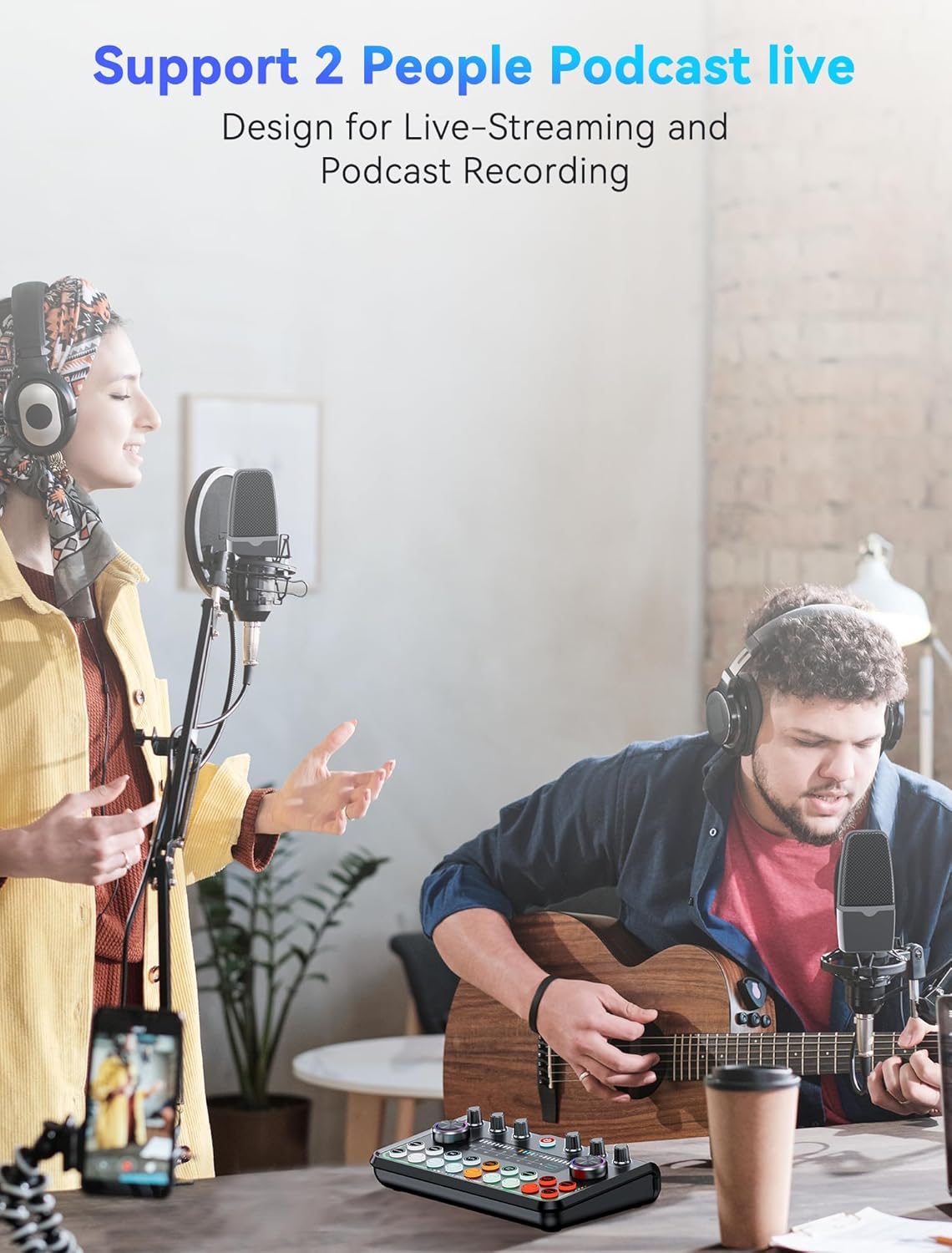 SINWE Podcast Equipment Bundle for 2,Audio Interface with Podcast Microphone for Smartphone & PC,All-in-One DJ Mixer,Plug-and-Play,Perfect for Streaming, Singing, YouTube & Gaming