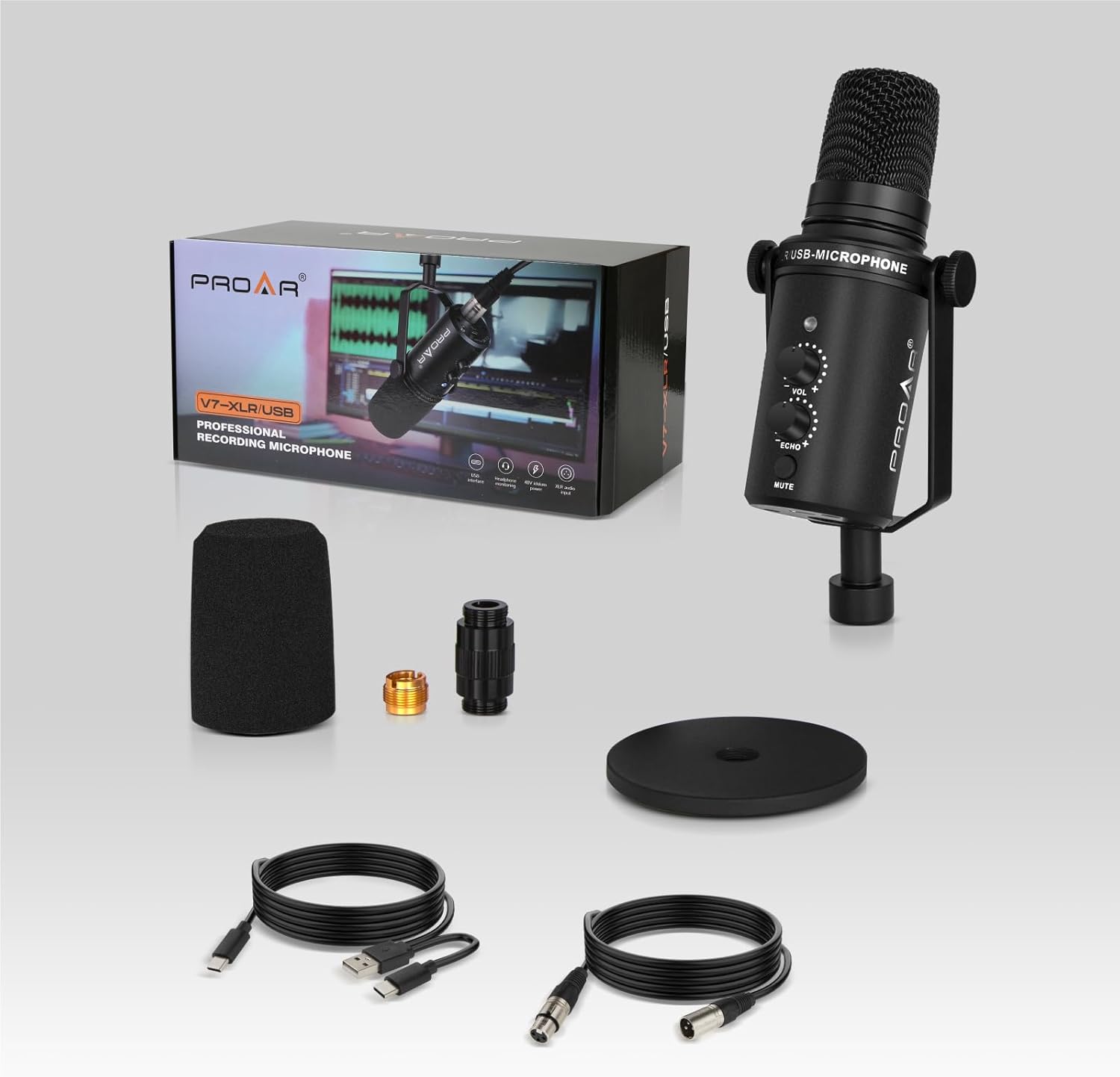 Introducing the ultimate XLR/USB Dynamic Microphone for all your recording needs! Whether you’re a podcaster, musician, gamer, or content creator, this professional studio mic kit is designed to elevate your sound quality to the next level.